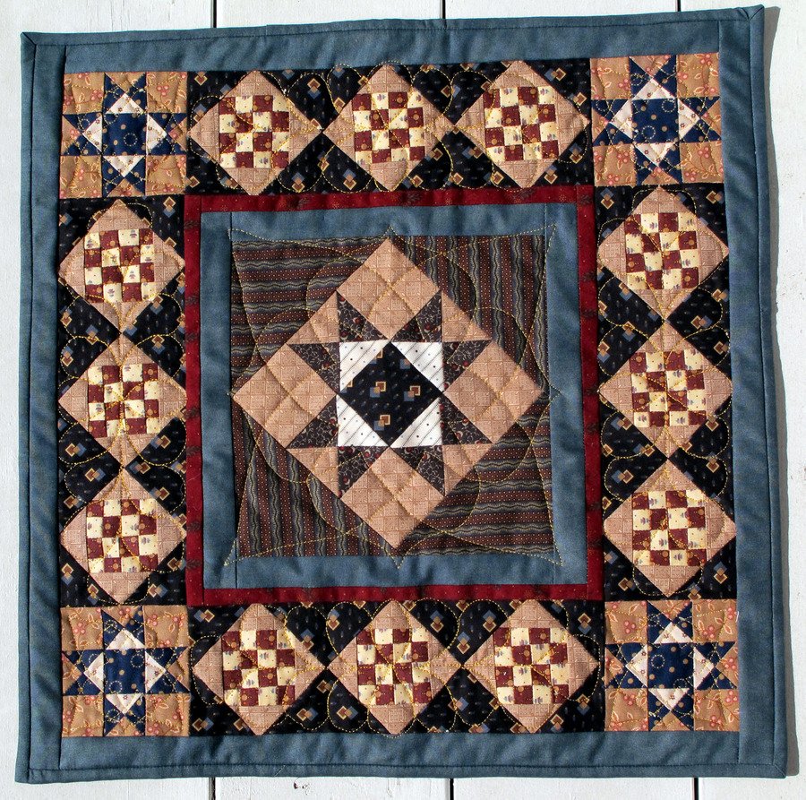 | Design Source - Description | 16 inch miniature quilt. I added the red sashing to the pattern - only because my 1/4 inch seams were not accurate! |