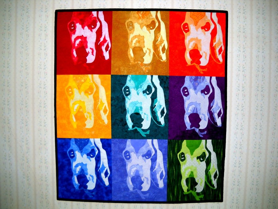 kmason Bailey Pop - This quilt was created for my guild's "Fine Art Challenge". I selected Andy Warhol's "Marilyn Monroe Series" as the inspiration for the piece. Bailey was a very happy, inspiring dog and my most loyal friend for 18 wonderful years.