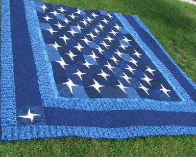 fbs810 Dawn's Starry Night - Many shades of blue for background and white stars, four blocks come together to create a star.