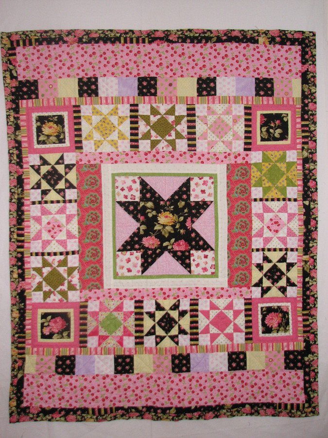 jbirdsander Josie Marie's quilt - This is the second quilt that I made using the La Belle Rose fabrics in a star pattern. As I mentioned before, I had seen these fabrics in a magazine in which a star was in the center of the quilt, but could never find the magazine to use the pattern, so I made up one.