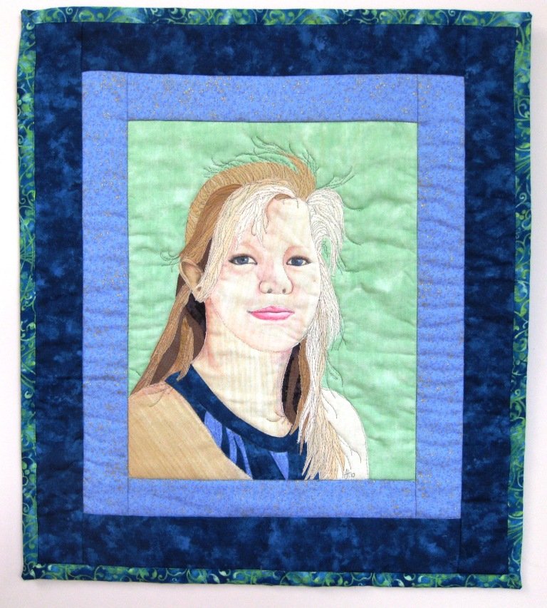 Amoret Sweet Sixteen - An 'Impressionist Portrait' quilt of my daughter using Pam Holland's techique on the LQuilt web site.