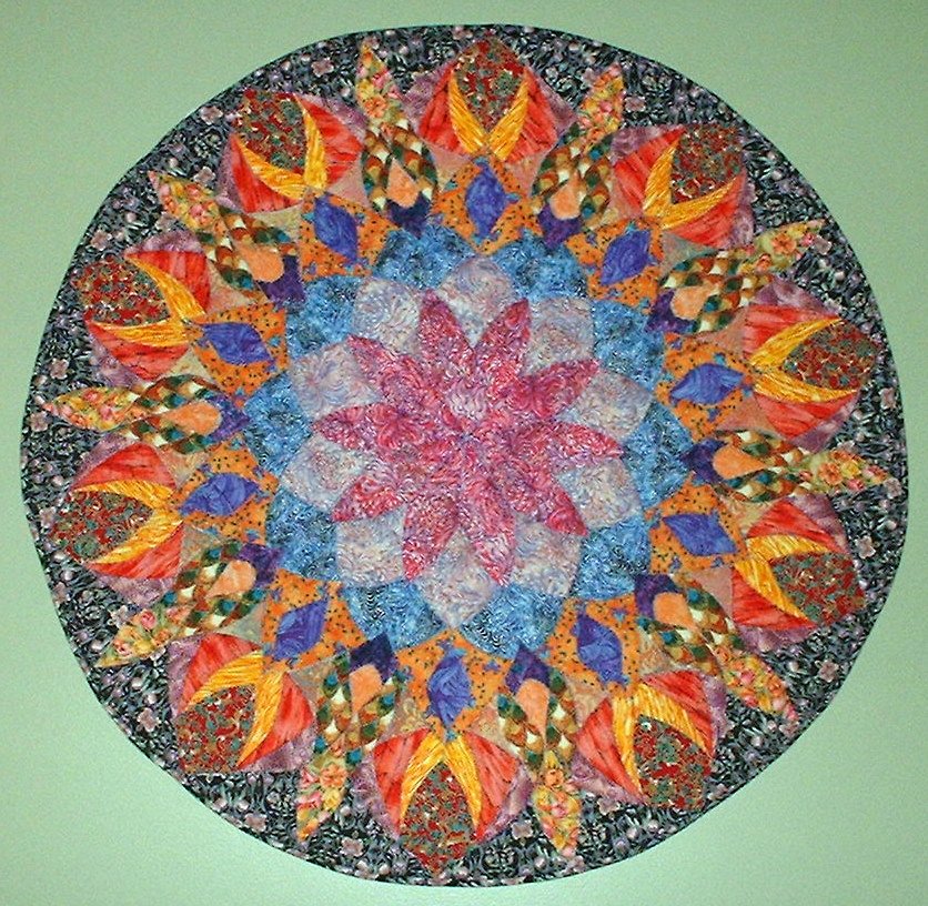 boothroyd Tequila Sunrise - I used Judy B Dales book "Curves in Motion quilts and techniqes" to design this quilt. I did not use her technique of 1/4" seams, I instead used Bonder web and then machine stitch over the edges.