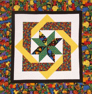 | Design Source - Description | Labyrinth is a fun lap quilt to make because it is fast and easy with my No Diamonds / No "Y" seams technique. This is my newest pattern. The fabric is called Jungle Friends by Timeless Treasures. |