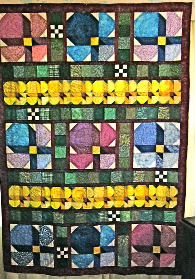 joan45 The Pansy Quilt - I started this quilt in 1997 when I first saw it, but got distracted to other quilts and did not complete it until 2009. I was going to give it to my first granddaughter when she was 8 or 9. Now she is 21, so I decided to give it to my 2nd granddaughter who is 8 now. I love the colors in this quilt.