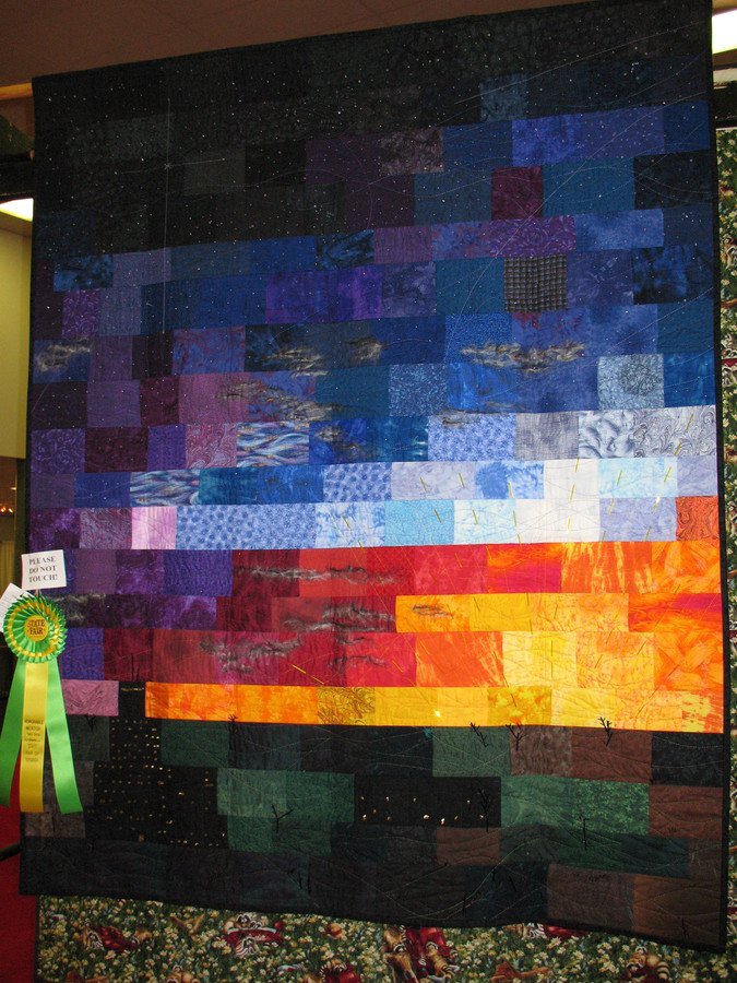 bskolaut Sunset and Evening Star II - My imagined (and romanticized) view out an office window at dusk. I wanted to see if I could complete a very large quilt. It now hangs in my office, so I have a "window" office (though it's always sunset outside).