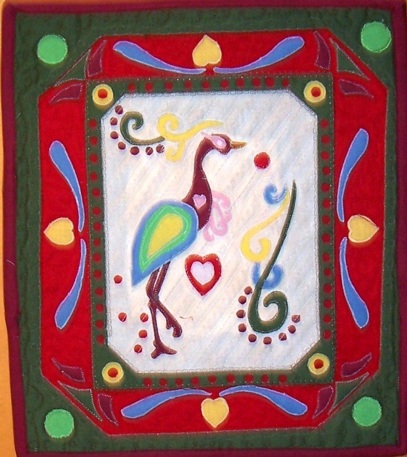 JANBLOCK After Pat Holly - I made this quilt after watching the Pat Holly show on this site. It is my own design, but appropriated from her style. I also bought her book, "Stitched Raw Edge Applique". It was a fun project and I will do more- hopefully all my own designs.