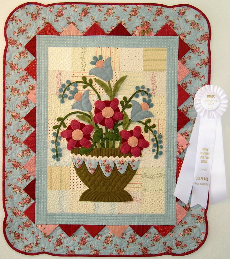 | Design Source - Description | Wool basket and flowers on a pretty pieced background framed by picot points and a curvy border. |