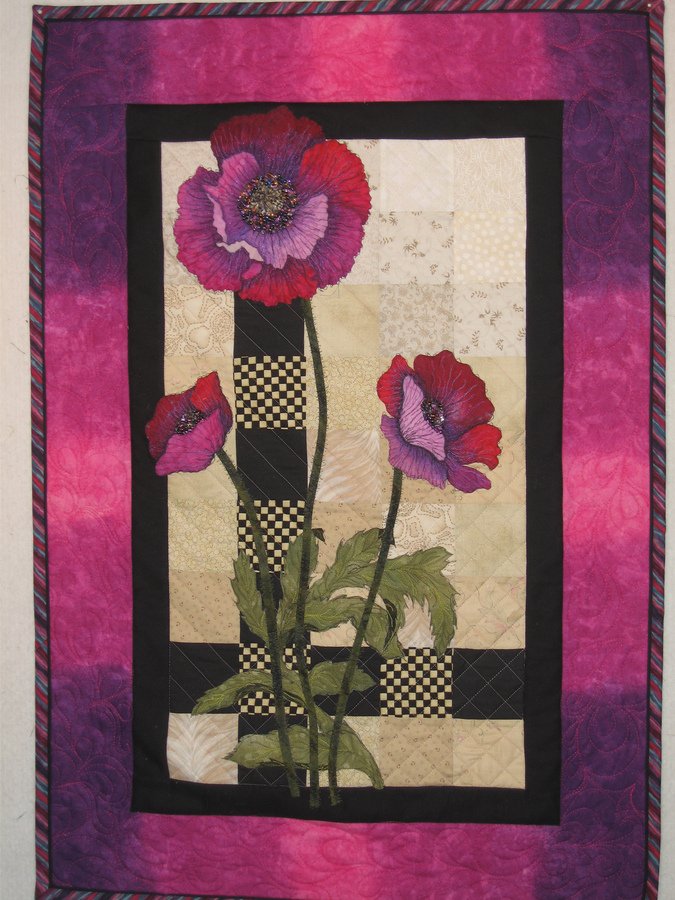 quiltngolf Poppies - From a class taught by Donna Greenwald of Chico, CA in May of 2009. Learned some fun techniques, love the results.