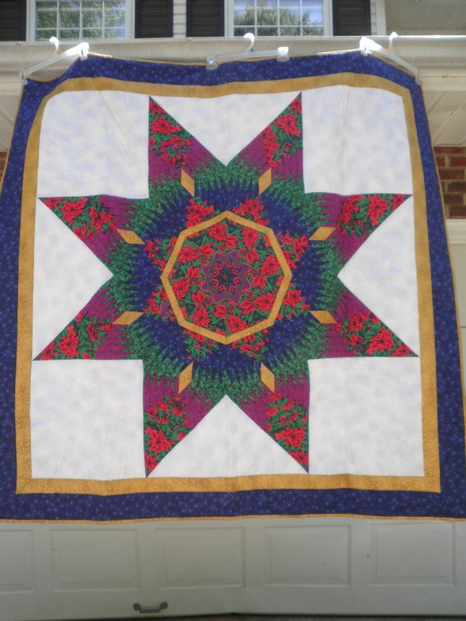 CarolL North Star - This was a class on paper piecing at my local quilt store. Made in Christmas prints it usually is draped over my sofa at Christmas