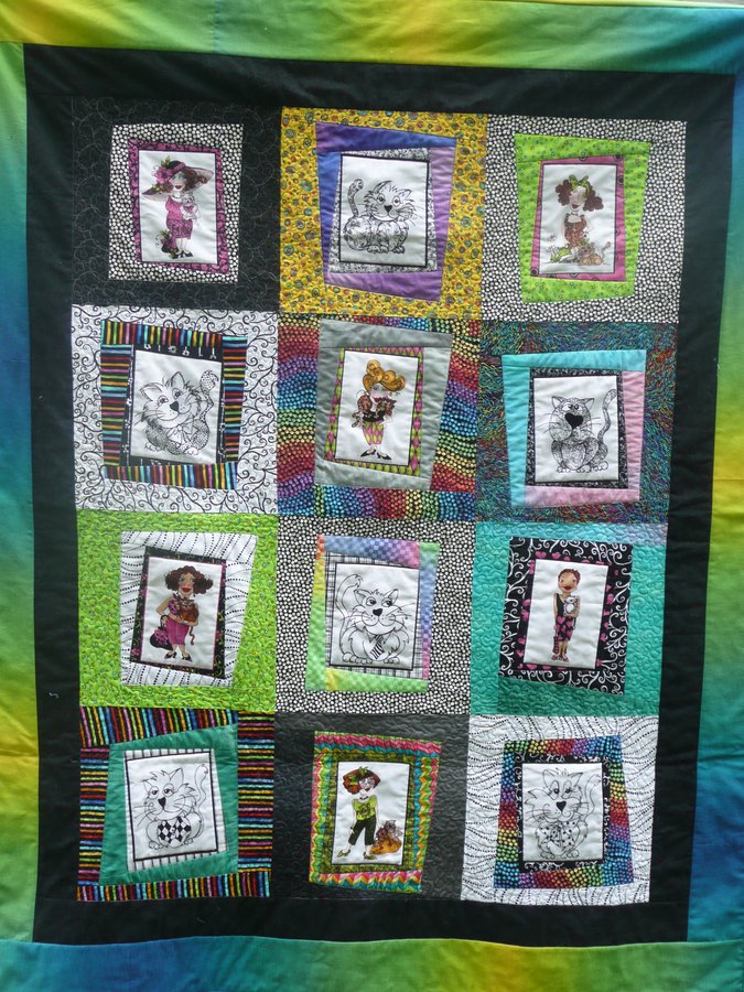Woodstock Norma's Quilt - This quilt was started during the Australasian Quilt Convention in 2009 in Melbourne in a class with Beth Miller from Australia. It was made for my sister who suffers from Alzheimer's. She has always been a bit of a zany person and loves her cats so this central fabric seemed perfect.