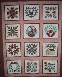 | Design Source - Description | My first block of the month and the quilt took 13 months to complete. My favourite form of handwork is freezer paper applique. |
