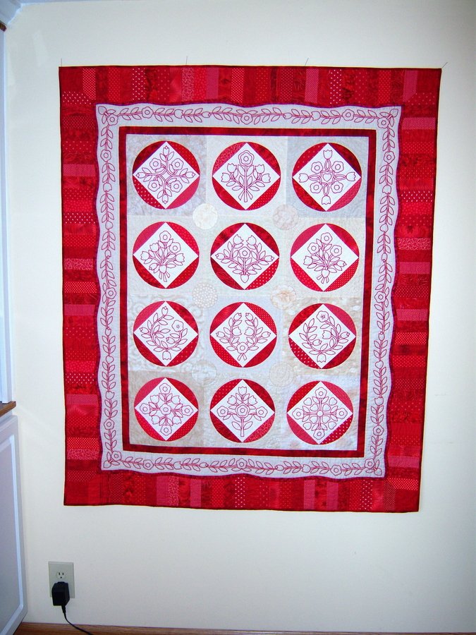 DiLa1 Circling Redwork - Wanted something easy to do while watching the olympics of TV.