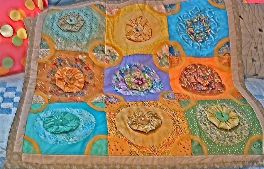 | Design Source - Description | Different fabrics were used for each circle. Yo-yo's were added to each circle with beads to each yo-yo. I added the felting. |