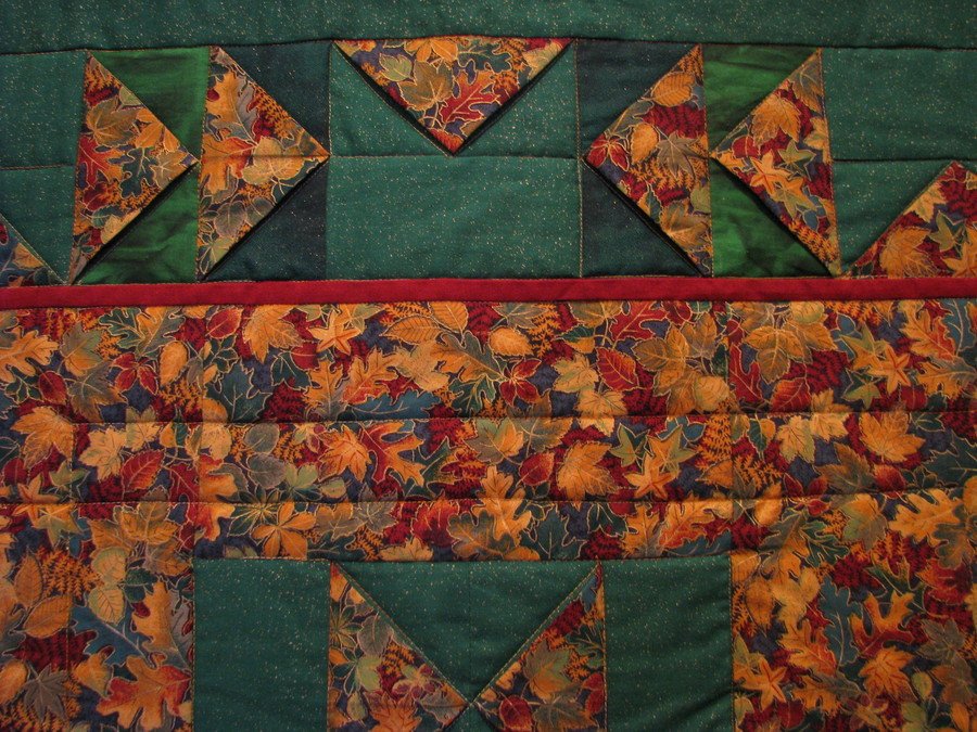 | Design Source - Description | Thanks to Ricky Tims demonstration of the One Seam Dimensional Flying Geese block, this pulled the whole idea together for this side of a Two-For-One Quilt. This is the Fall side, Christmas is on the other side. |
