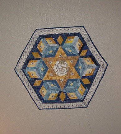 | Design Source - Description | Paper pieced design published in Quilters Newsletter made with paisleys, I changed it, using Hanukah Fabric, making it a "Star of David". |