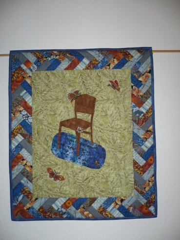 quilting00 The Secret Place - "The Secret Place," inspired by the novel, "Loving Frank." There was a place in the book that described a place in prairie grasses that one of the characters loved to go to be alone. When her dad was transferred to another city and the family was packed to leave, she took a kitchen chair and an old braided rug to the spot in hopes that the next person who lived in the house would find and enjoy this place.
