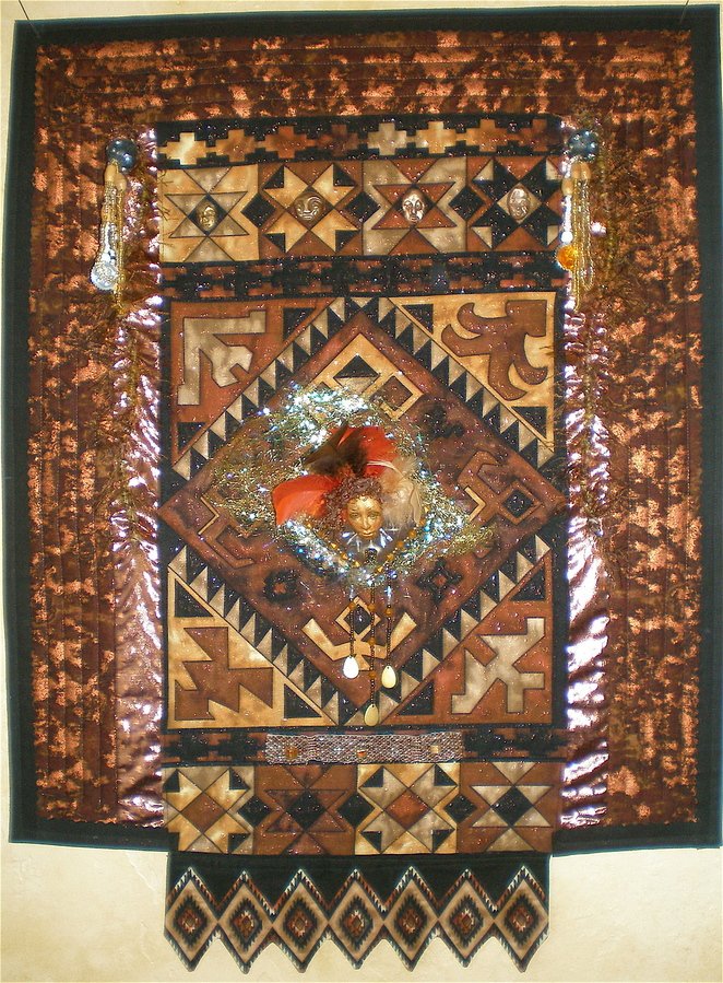 | Design Source - Description | Use of decorative fabrics with feathers, beads and clay images. |