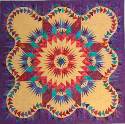 | Design Source - Description | Quilt result of a workshop with Judy Niemeyer. Used Kaffe Fassett fabric which made it very bold. Machine quilted on my home machine. |