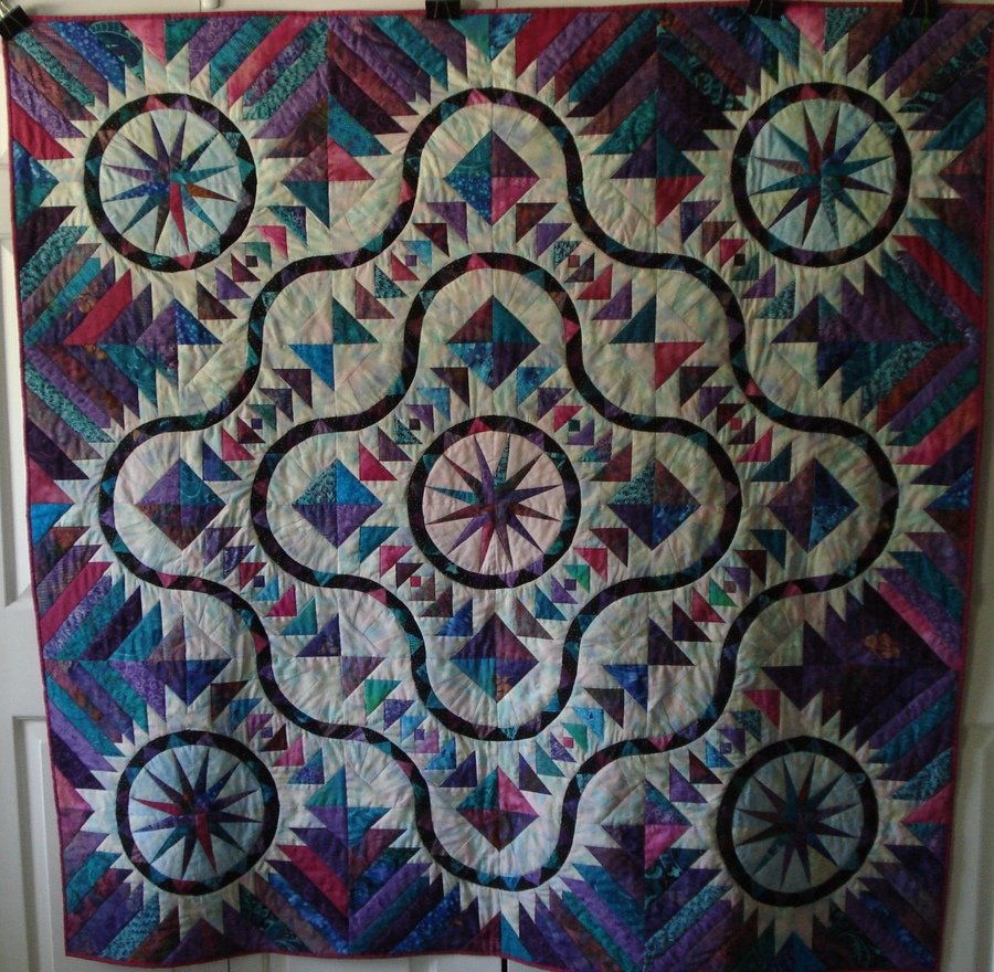 | Design Source - Description | Quilt is made of my favorite colors. The flying geese and mariners compass blocks make this one outstanding. |