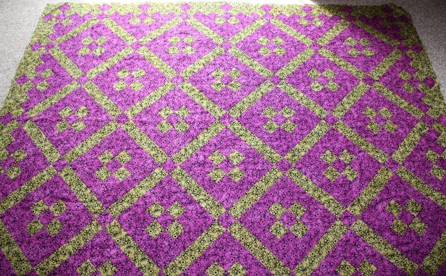 | Design Source - Description | I made this lap sized quilt using the first two blocks I learned, the rail fence and the nine patch. I oriented them on point to make this pattern. It is just the top and not yet quilted. |