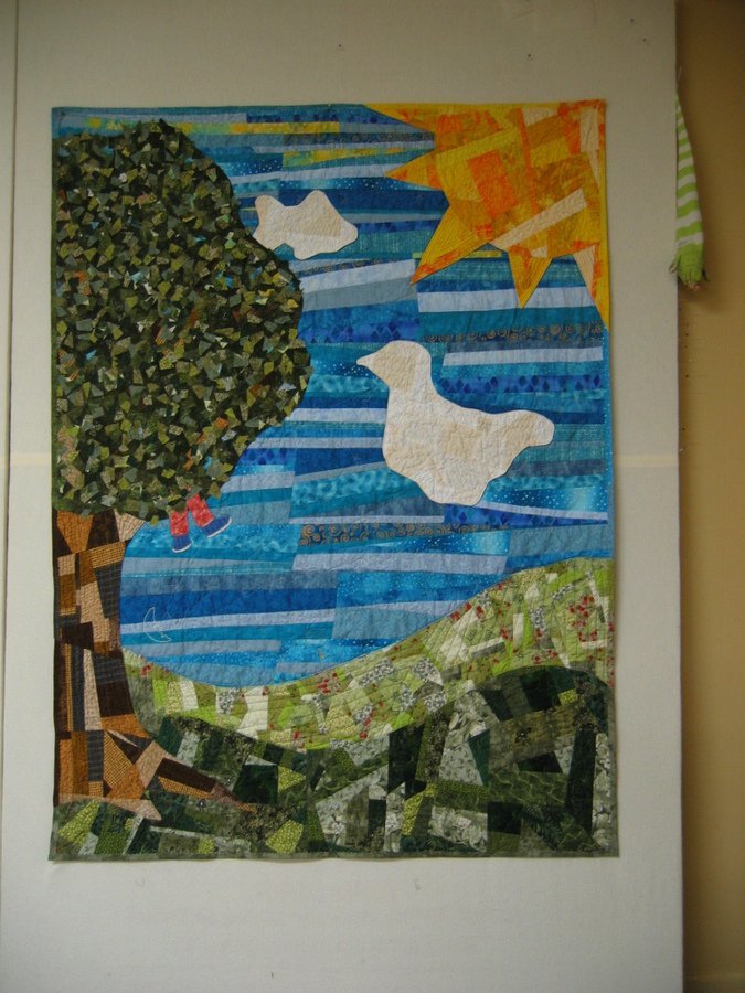 Qlts2Slo Summer Dreams - Conceived for challenge entitled "The Child Within Me", but completed years later. Second in the "What was I THINKing" series. Designed with sister J. Parker. First completely quilted free motion.
