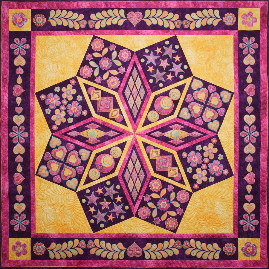 SarahVedeler GO! Be Dazzled - Designed to take advantage of the GO! dies by AccuQuilt, and as a Block of the Month program. It turns out that Embroidered Applique and the AccuQuilt GO! are a match made in heaven! The cutting for this quilt was sooooo easy.