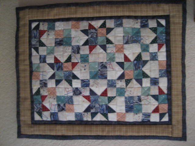 | Design Source - Description | We had a mystery quilt activity in my local guild. I pieced a lap sized quilt and liked it so much, I made a scaled down version to hang in my kitchen with my leftover scraps from the mystery quilt. |