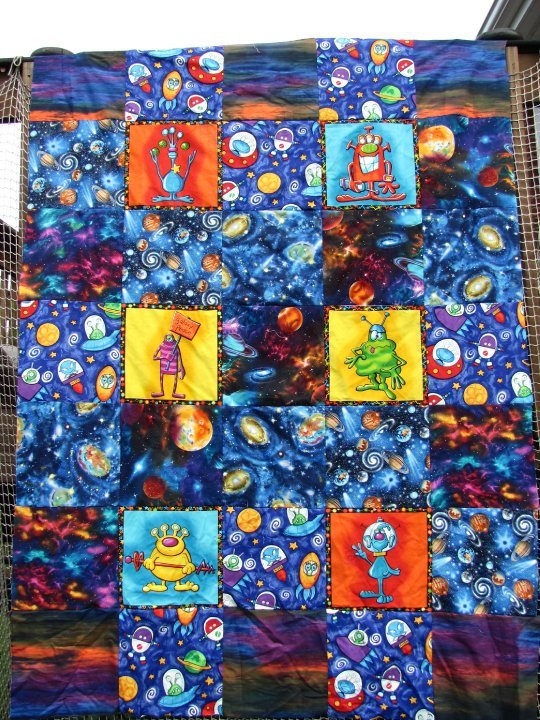 rbquilt Space Invasion - I was collecting space fabric, when I saw these creatures I knew I had the quilt made. They are so cute.