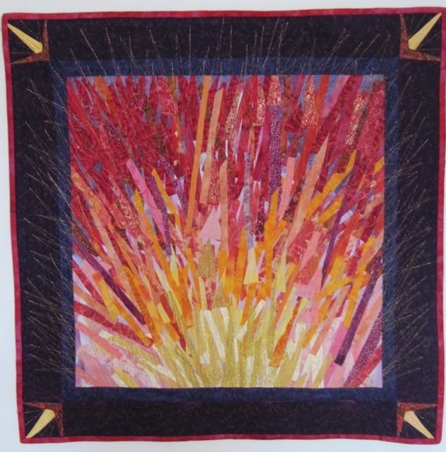 | Design Source - Description | Small wall quilt. Reds, oranges golds, Like the sunrise. Fused and quilte with metallic and holographic thread |