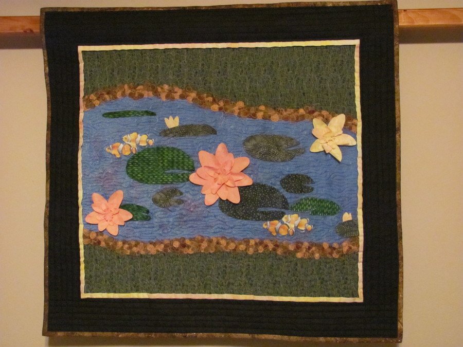 | Design Source - Description | I used a 3-D applique method for the lilies and lilypads. We started our real water garden a couple of years ago. This quilt shows a look into my pond. |