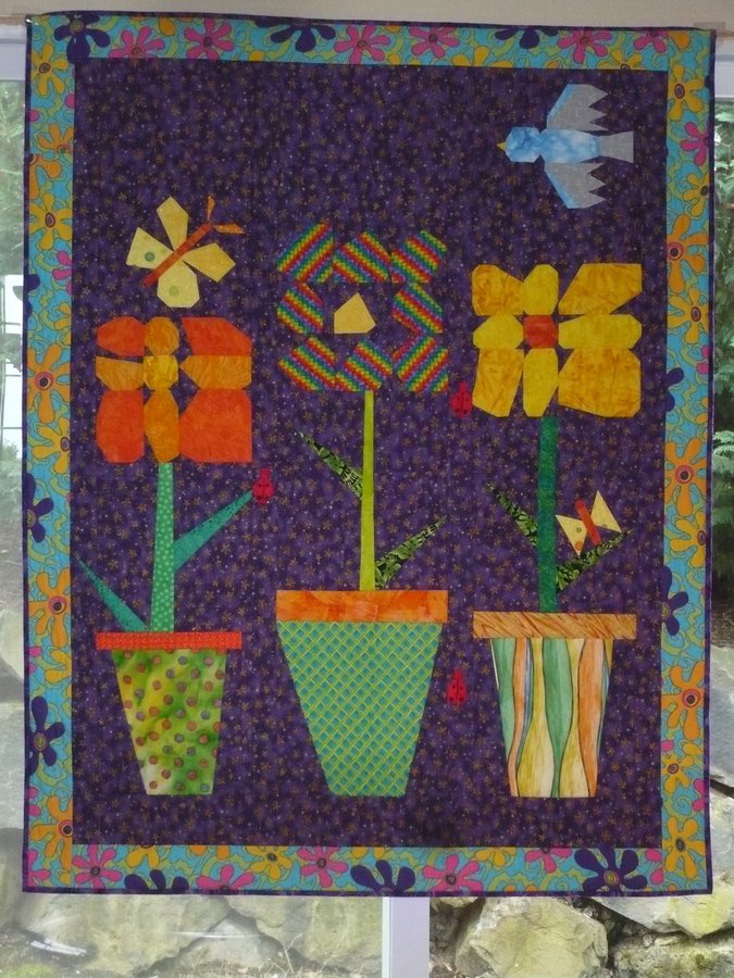 quilting00 Grace's Flower Garden - Given as a birth present to Grace. Made the center block in a class in 2008 using MaryLou Weidman's Flower Power book as a guide. Found it really fun and freeing to not use traditional pattern methods. Lots of machine quilting in top with Masterpiece thread. Finished July 2010.