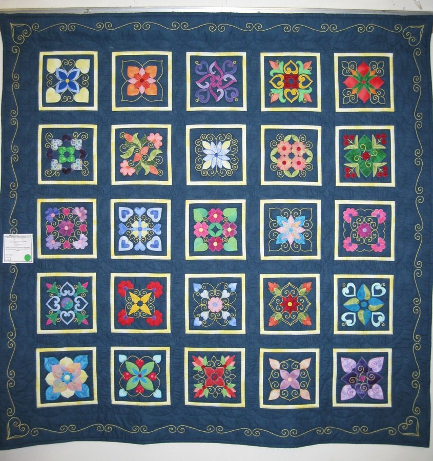 leeannq I'm a Hopeless Romantic - I made this quilt using some of the blocks from Aie Rossman book "Affairs of the Heart". Hand stitched button hole applique using embroidery floss. I designed the embroidery on the outside border, to match the embroidery on the blocks. Most blocks were stitched as I watched my son at his archery club.
