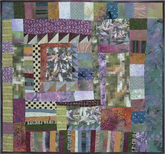| Design Source - Description | Inspired by a photo of Wandering Jew in neighbors yard. The photo was printed on cotton fabric. A photo effect produced the mosaic printed on fabric. |