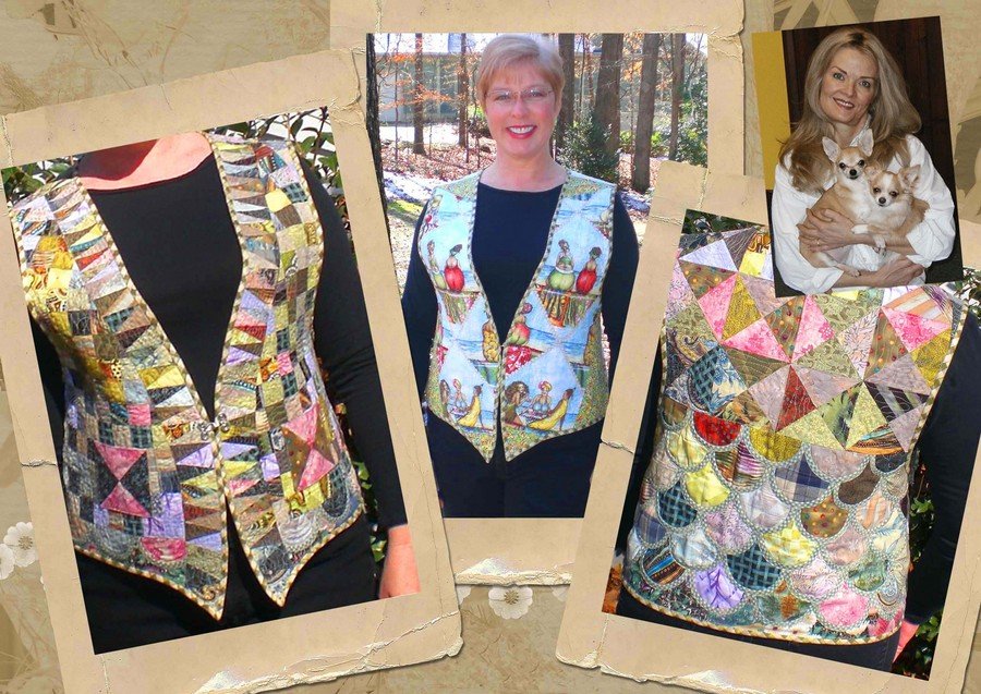 bethbmcginn Fruit on the Bottom in 3.5" - Fruit on the Bottom in 3.5” sizes small to x-large This reversible vest is a fun project to work on. It’s small enough to work on during the winter or summer holidays when we have other things to enjoy. I have included five COOL techniques to learn without having to practice on a whole quilt. It is very figure flattering. Plus, you get to wear it and get lots of complements! Visit me at www.hexilady.com With Gracious Thanks to Barbara Barber,The UK's best known Champion Quilter, for her Clamshells! See her website at www.barbarabarberbritishquilts.com