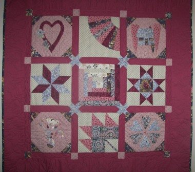 | Design Source - Description | This was my first quilt- a sampler designed by Sue Anderson and made in workshops over a period of months. All hand-quilted. |