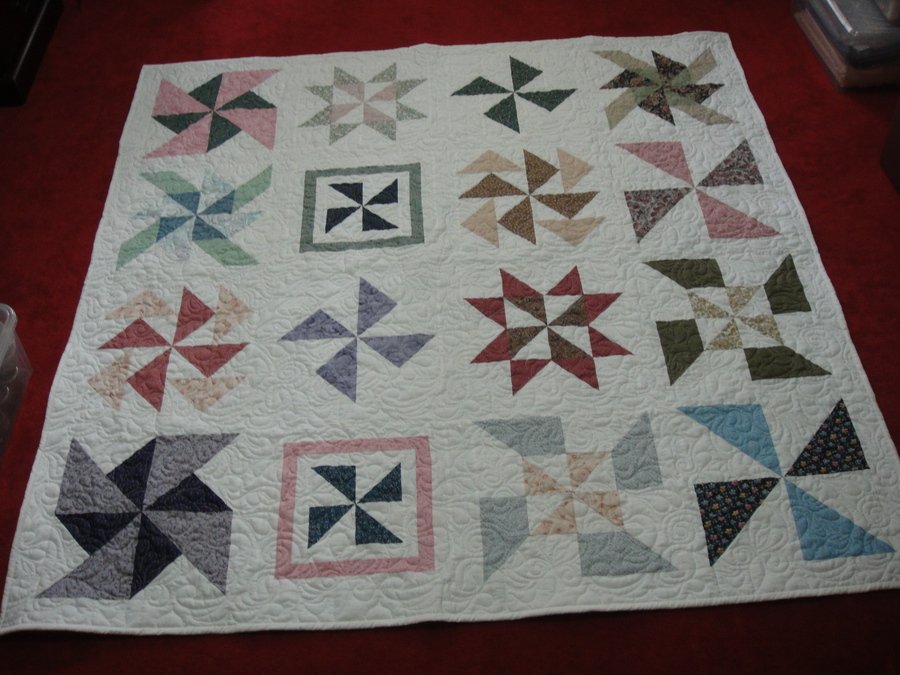 klg727 Pinwheel Sampler - This is a sew along project posted on-line by PSIQUILT. I used only scraps from my stash. Quilting done by Bear's Quilts in Long beach CA.