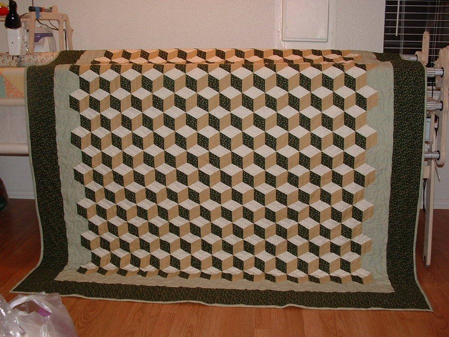 | Design Source - Description | This is a 3 color Tumbling blocks quilt made using Marci Baker's strip piecing method. It was very easy to do. |
