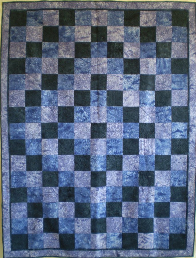 kegarth Stipple Sampler - I made this quilt to practice different stipples on my new longarm, and it is the first quilt I did with the longarm. Each block is a different stipple, about half from Sharon Schamber and half from Leah Day. I designed the border with flowers and feathers.