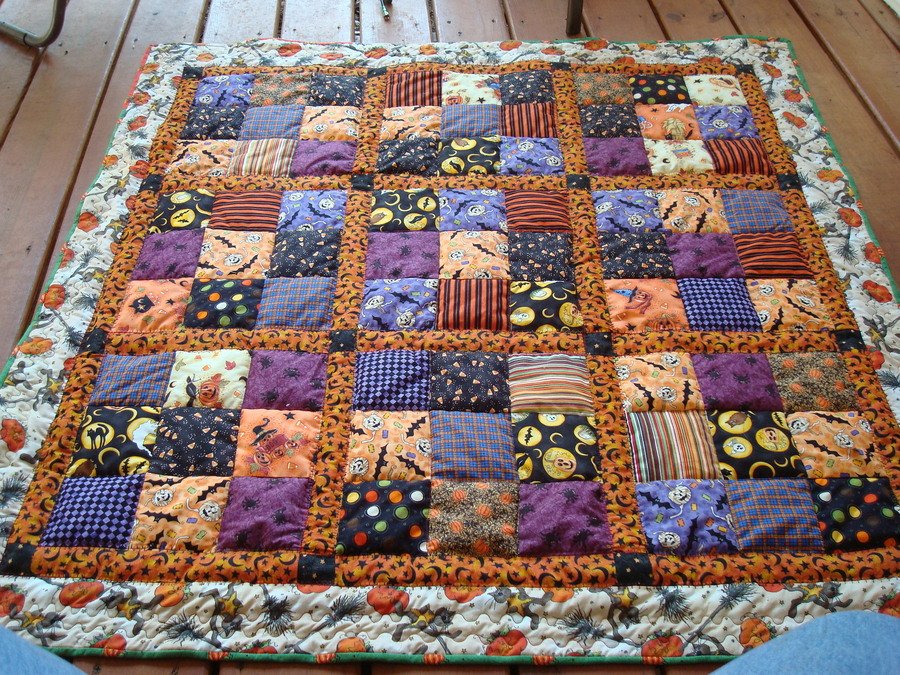 | Design Source - Description | Made for girlfriends new grandson, Riley. The back is Charlie Brown Trick or Treat fabric, so cute and timeless. Made this on my new Pfaff expression 2.0 won a couple weekends ago at a quilt shop drawing. |
