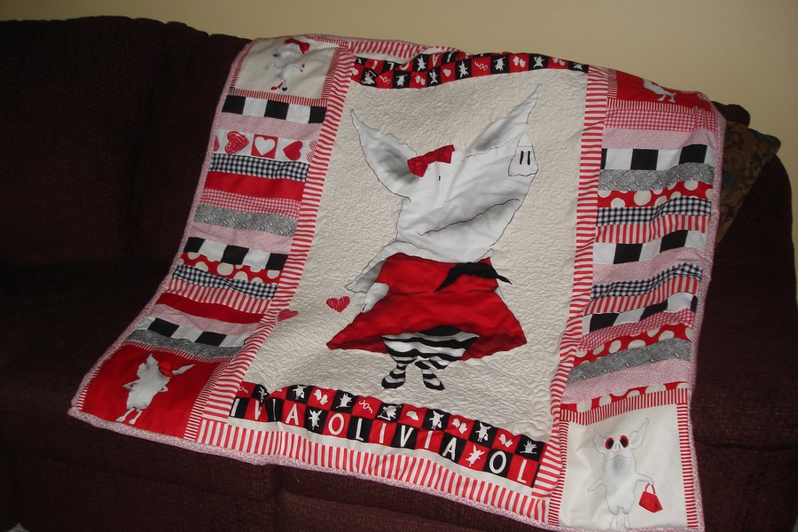 | Design Source - Description | just a simple whole cloth panel quilt made with love for my granddaughter Ava who loves loves loves Olivia! Added a couple little appliques and some nice stippling. |