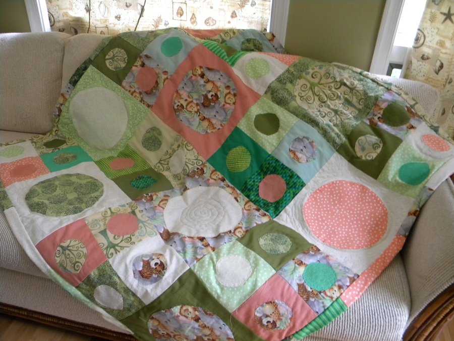 sweetteadesigns abigails jungle - tracey wanted to decorate Abigails room in jungle animals, and I was playing aournd with circles...came up with this quilt over the summer of 2008. Imagine my surprise when I started seeing circle quilts all over the magazines the following year....oh well. go figure.
