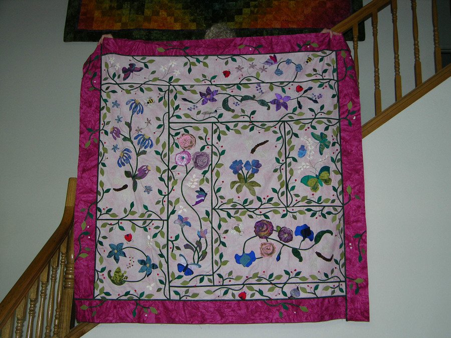 Softdesigns Simple Things in Life - I saw this quilt in a magazine many years ago. Eight years ago I went to Huston and took a class from Mary Sorenson. I went to her booth and purchased a pattern which I was drawn to. It was tucked away in my forgotten box until last August (2009) when I found it and became obsessed with it. Started in 2009 and finished the quilt top in May (2010). It is currently waiting for professional quilting (April). Note: while I was cleaning my sewing room, I found the pic from the magazine and realized that this quilt was meant to be.