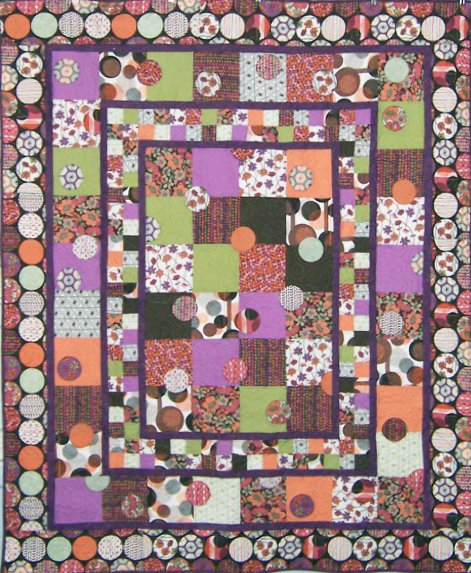 jeanannquilts Oh-Oh Olivia! - Windham sent me these fabrics and they screamed, DOTS!" I sewed 8" squares together then cut out and added applique circles to move the large circles from the borders to the center of the quilt. It sewed up as a full size quilt in just a day!