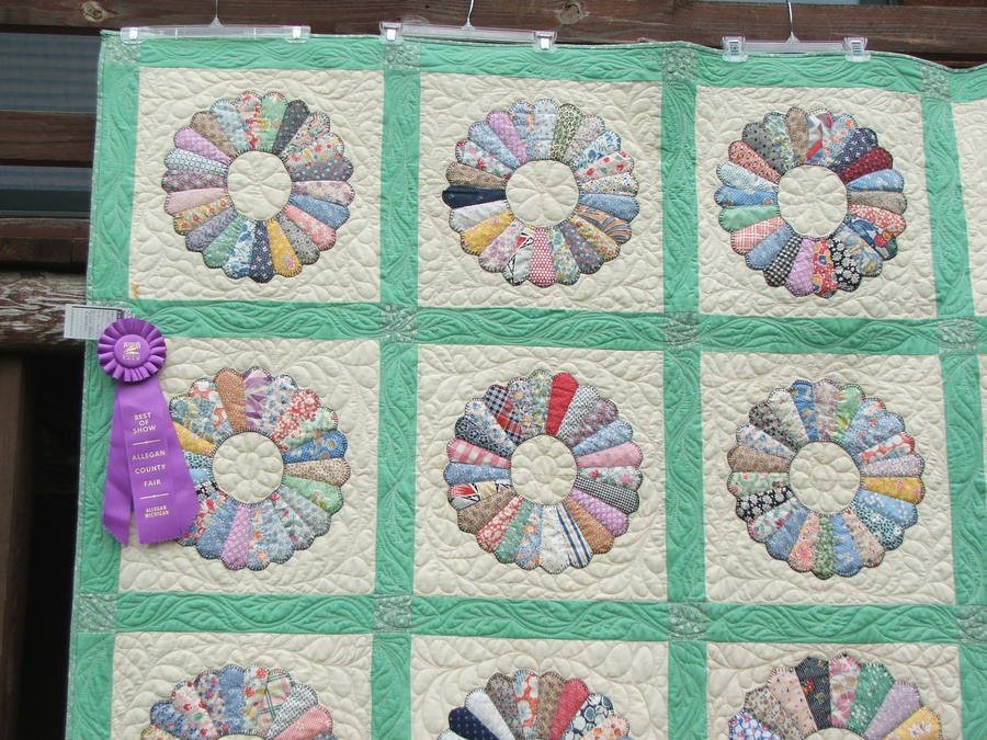 cjho57 What would she think today? - These blocks were hand pieced by unknown quilter in the 1930's, I purchased them at an antique market and assembled them with reproduction fabric for the sashing and corner stones, and then machine quilted it. It turned out so nice I entered it in our local fair and won Best of Show...Needless to say I'm very proud of this quilt.