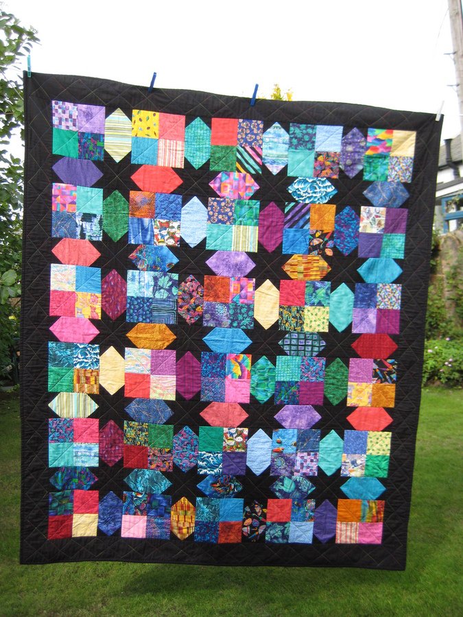 sengtser1 Scrap Quilt One - Was feeling at a loss wanted to sew ut not sure what to make so - on a whim decided to cut up my small stash into squares and various witdths strips and just sew. This is the first one finished. I like it and think is fits together well. Quilting is straight line - just enough to hold it all together.