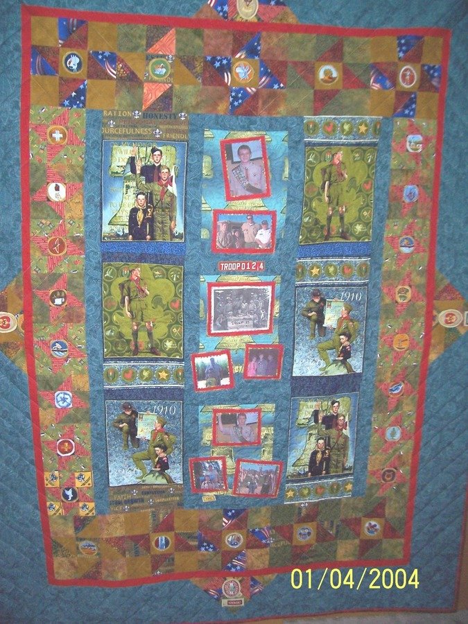 joyspot22 Boy Scout Memory Quilt - Quilt mqde as a presentation piece for my grandson who will make Eagle Scout in this the 100th year of Scouting, 2010