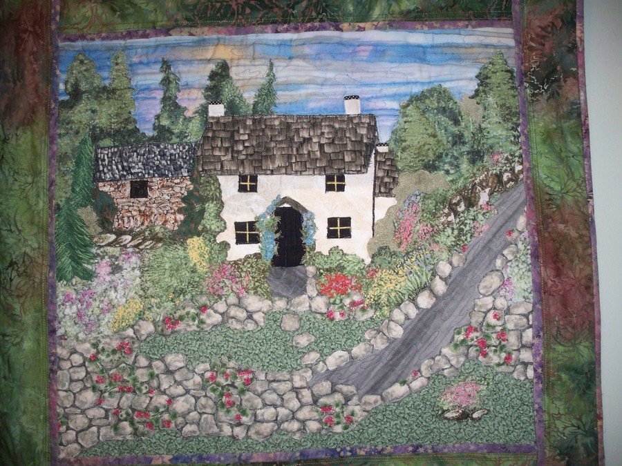 searobin60 Syke Cottage - My first landscape quilt started in a class with Joyce Becker, Kent, WA. Published in her second book- "Beautifully Embellished Landscapes". Inspiration from a cottage in the Lake District of England which my family rented to celebrate my 60th birthday.