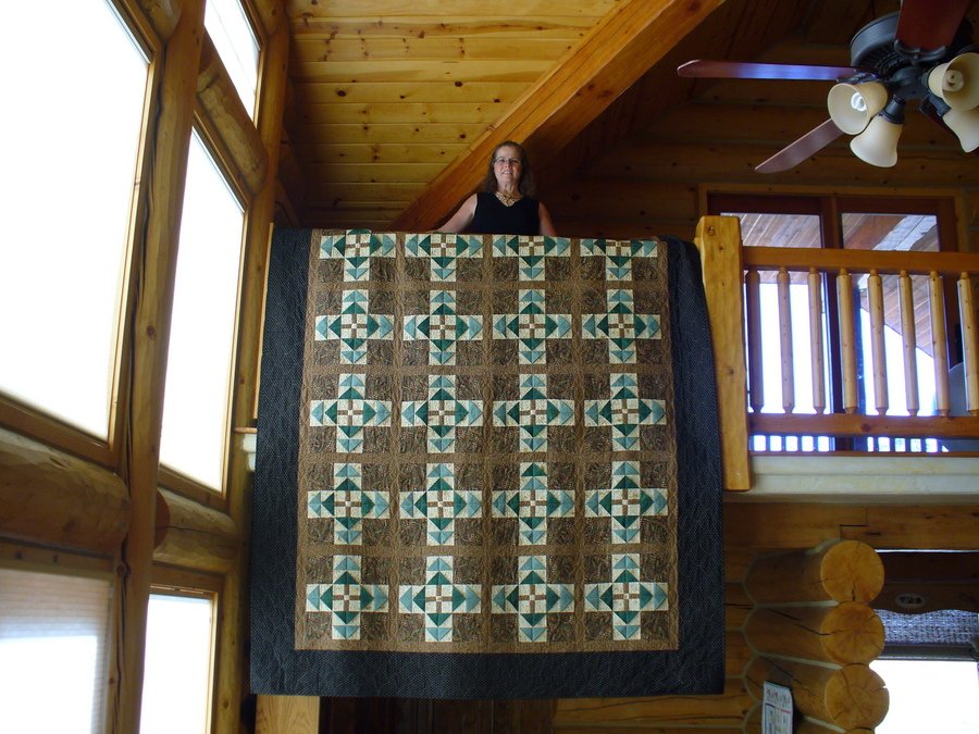 gailtozier Pines and Needles - The "trees" would have been easier if I'd know the Ricky Tims way....they are 3D. But, I'm really please with the finished quilt, as is my husband, who I made it for. Most of the quilting was done with the use of rulers on my long arm...clam shells, pumpkin seeds and motifs.