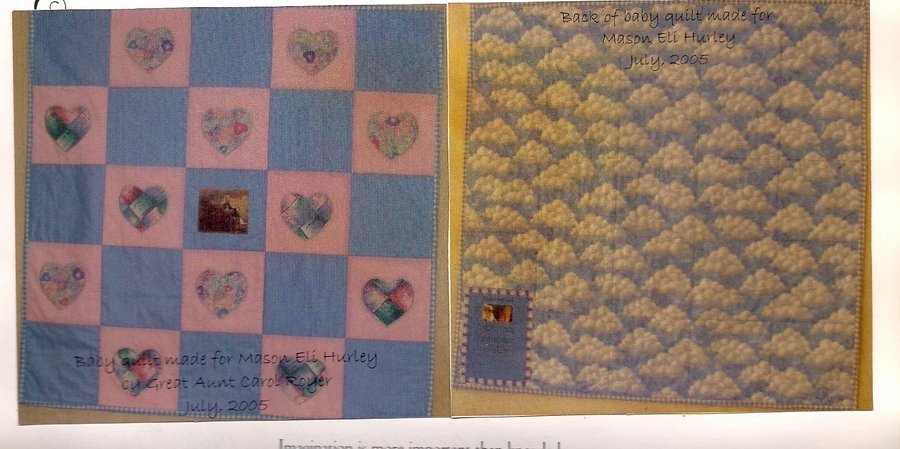sugarheart Grandmother's memory quilt - Center block is a picture of my sister, grandmother of my great nephew.