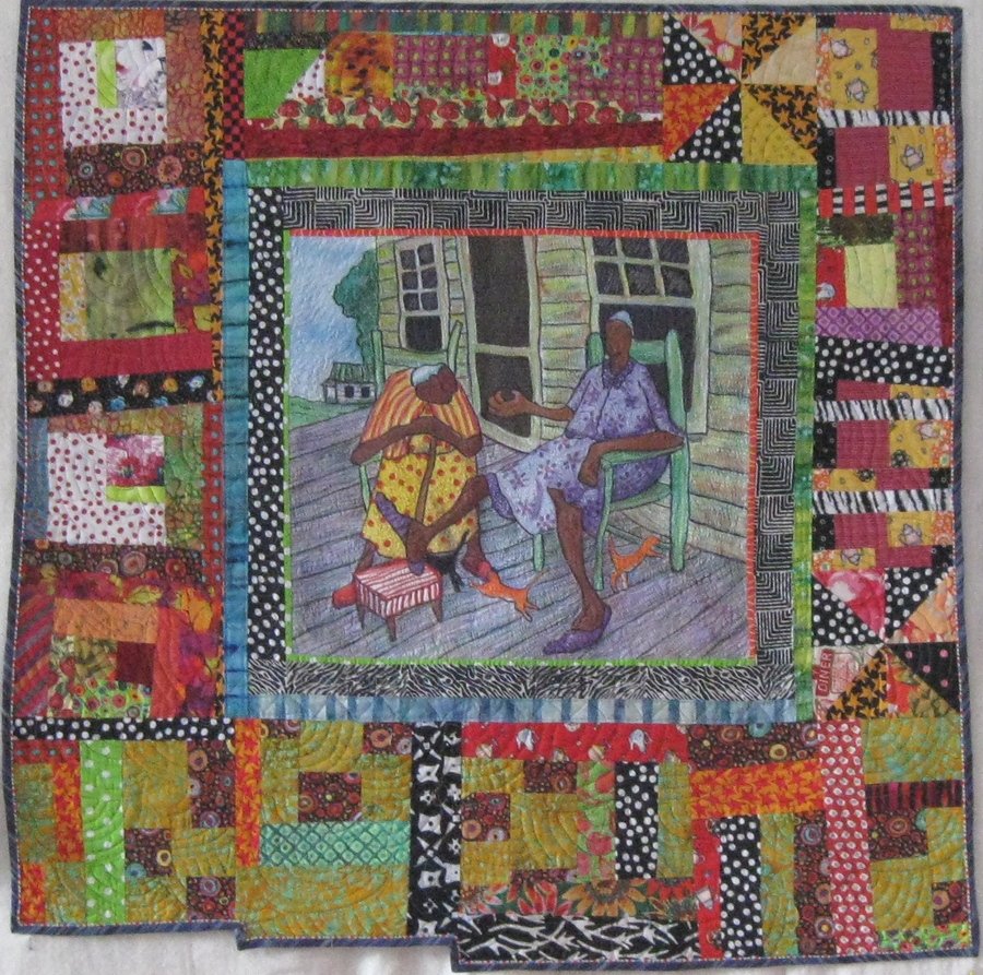 MaggieinSC Neighbor Ladies - Tsuniko Inks, Innovative Patchwork, Thread Painting